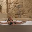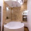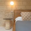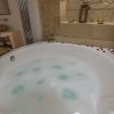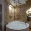 Ampio bagno con vasca idromassaggio, ozonoterapia e cromoterapia. Doccia con 4 soffioni a caduta.Camera da letto al piano superiore con letto matrimoniale in pelle. Lampade artigianali in pietra leccese. Lampade di design by "FLOS".